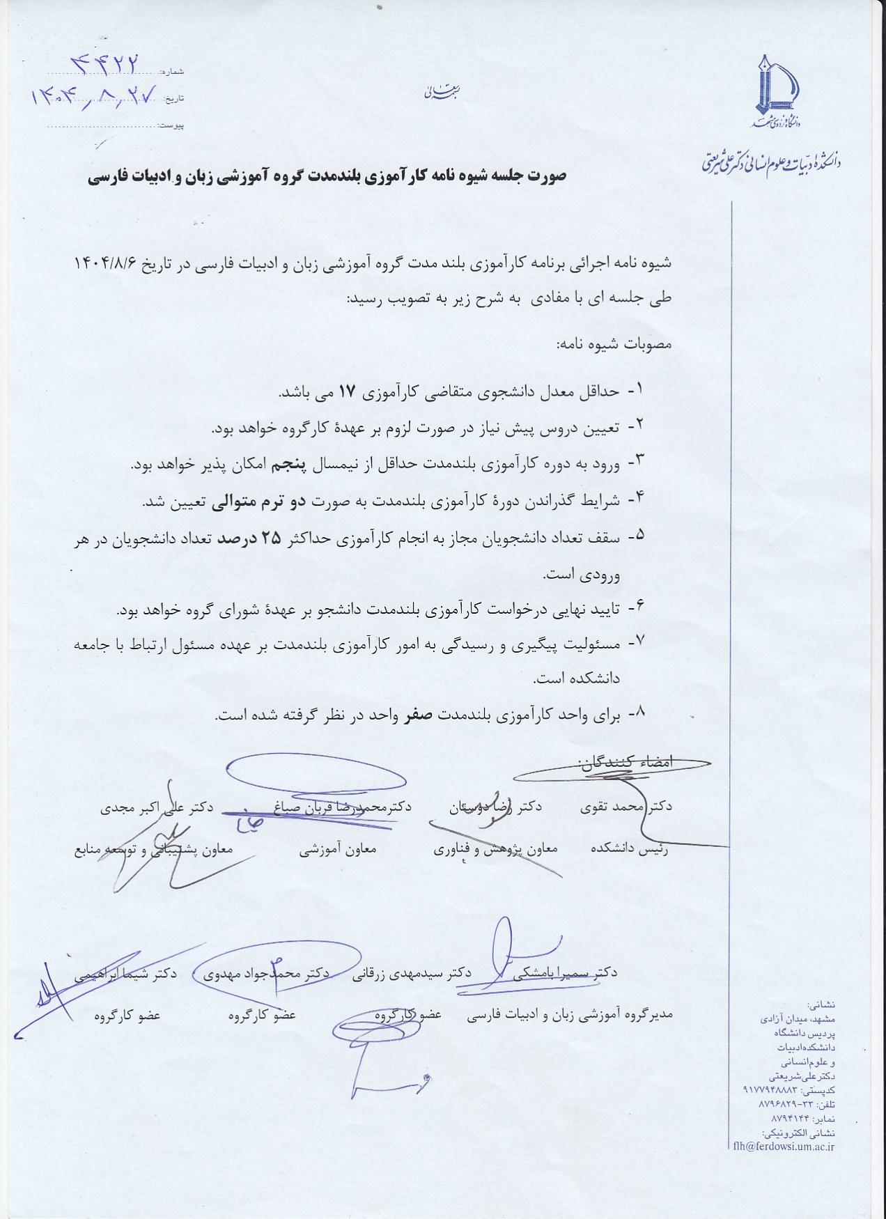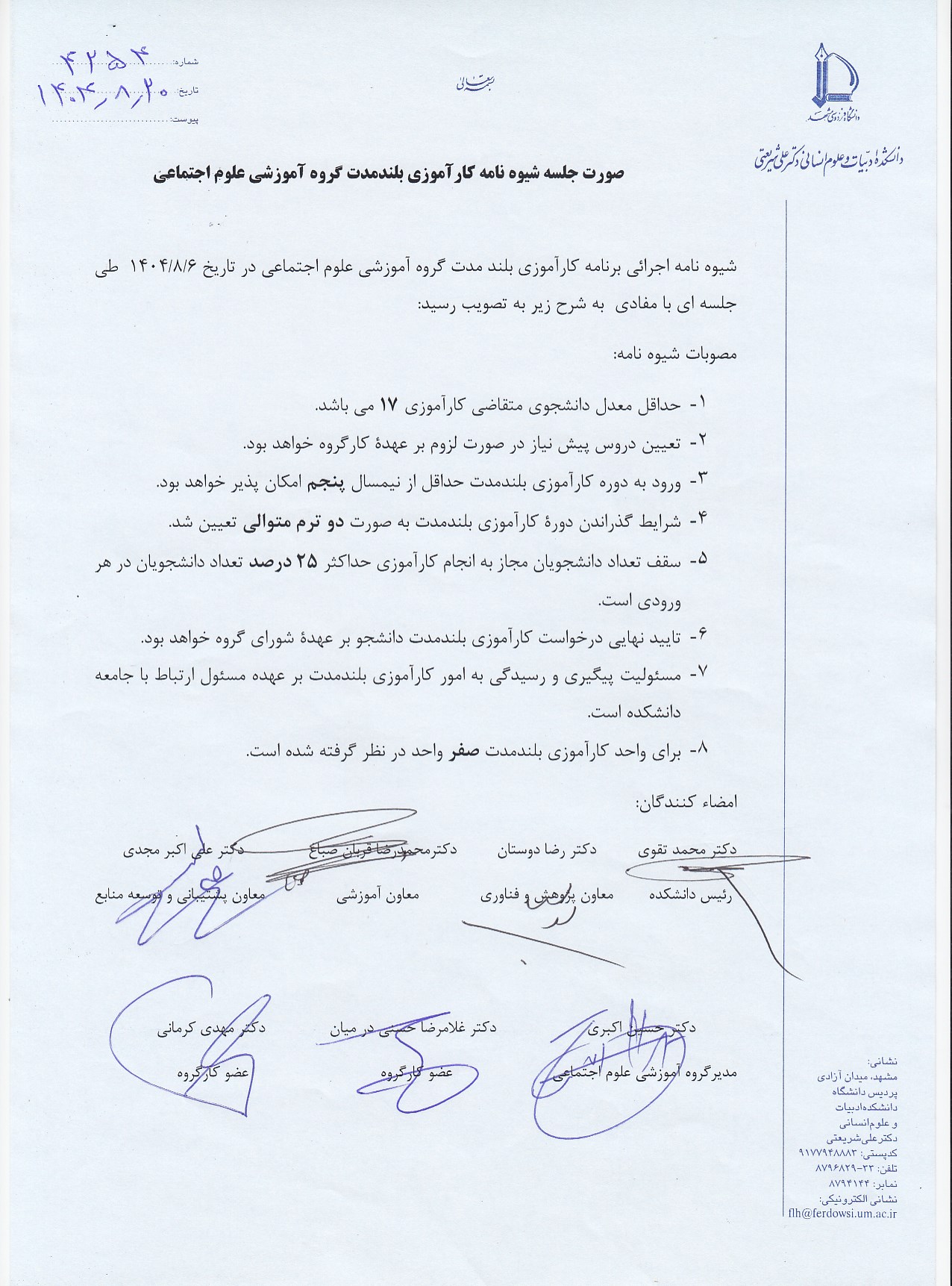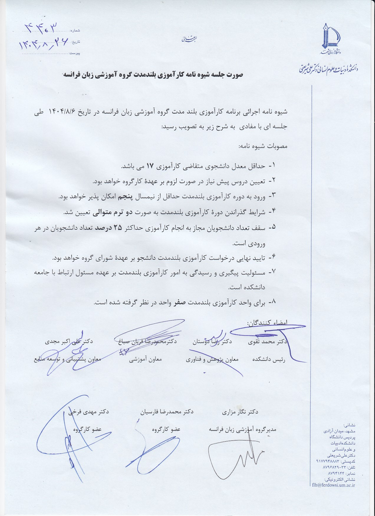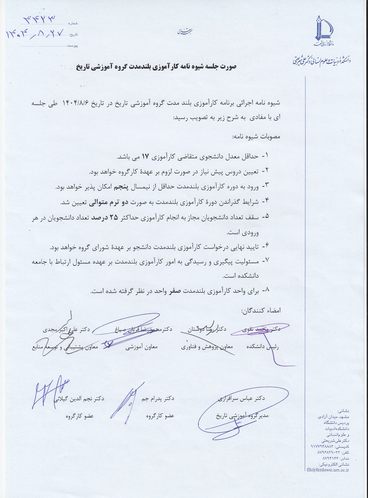 برای کسب اطلاعات بیشتر و آشنایی با جزئیات شیوهنامه اجرایی و مقررات این دوره، لطفاً به شیوهنامه جامع دانشگاه و شیوهنامه اجرایی گروههای مربوطه مراجعه فرمایید.